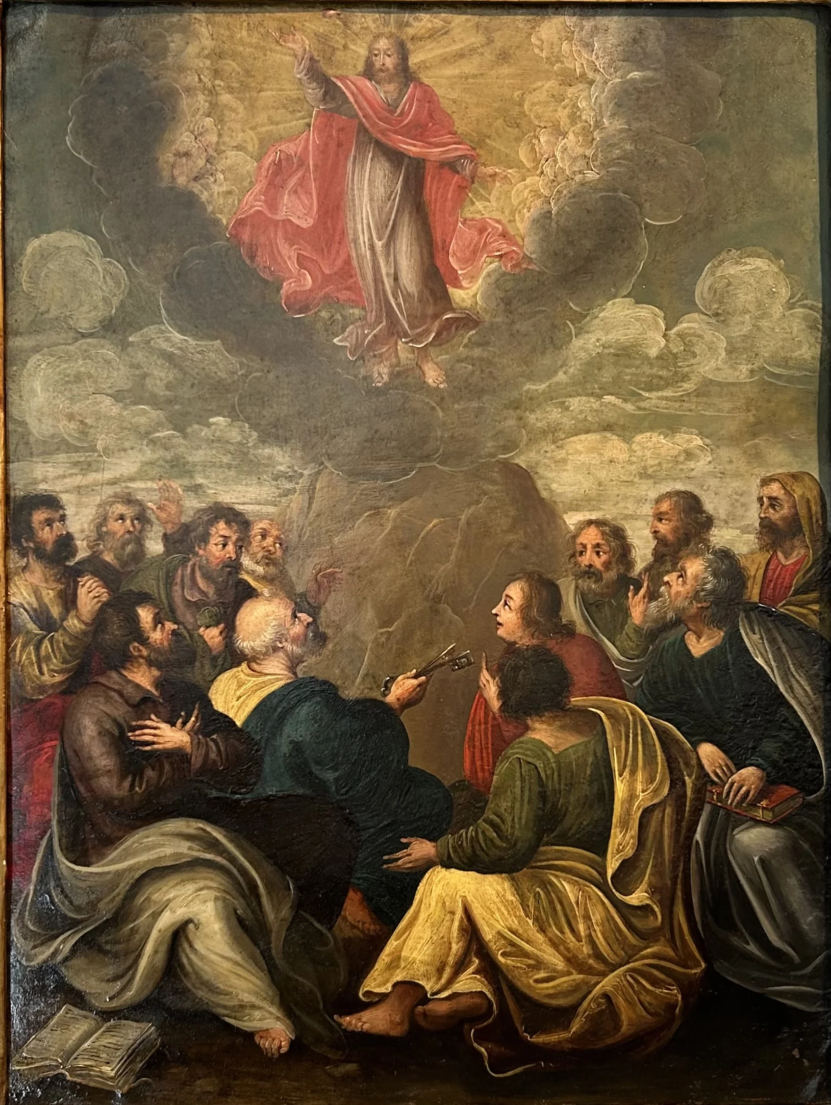 Ascensión de Cristo, escuela holandesa siglo XVII. Óleo sobre cobre 44 x 33,5 cm. Pieza en un excelente estado de conservación en el que cada uno de los personajes que aparecen en