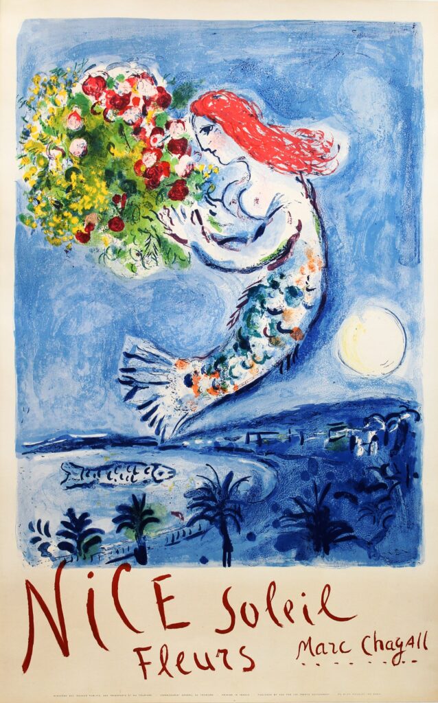 Nice, Soleil, Fleurs, impresión litográfica de los talleres de Mourlot, publicado por el ministerio de trabajo, transportes y turismo del gobierno francés en el año 1962