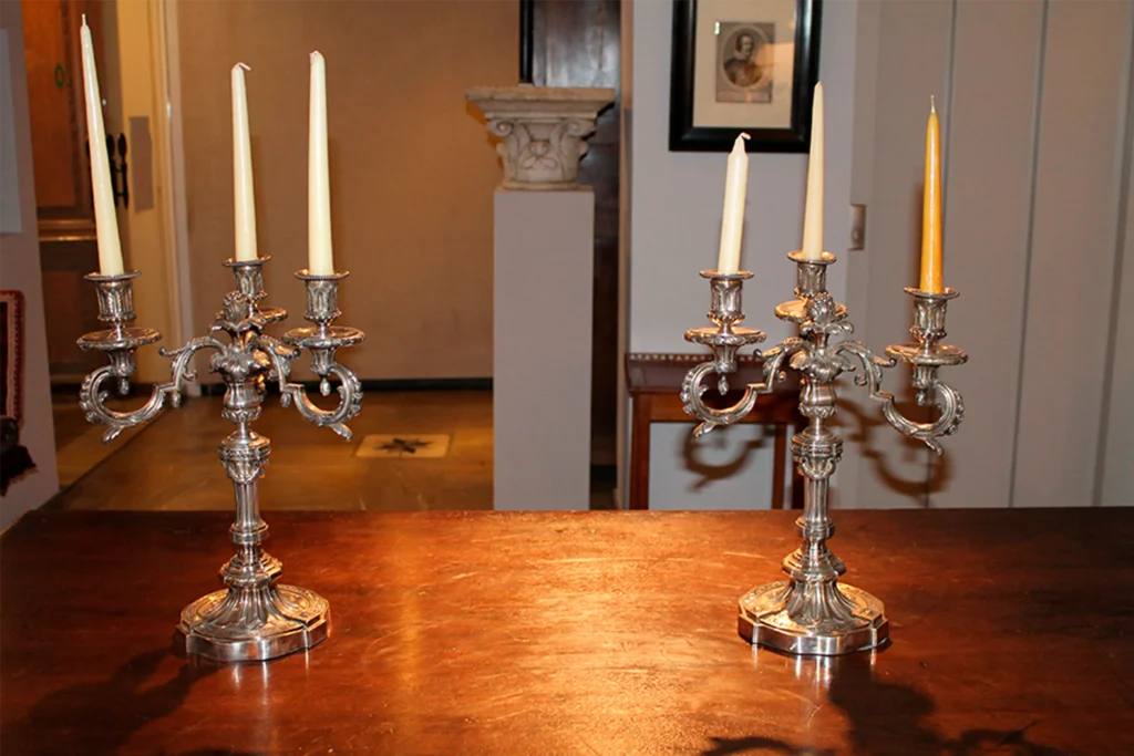Pareja de candelabros de bronce plateados de época Luis XVI, hacia 1790