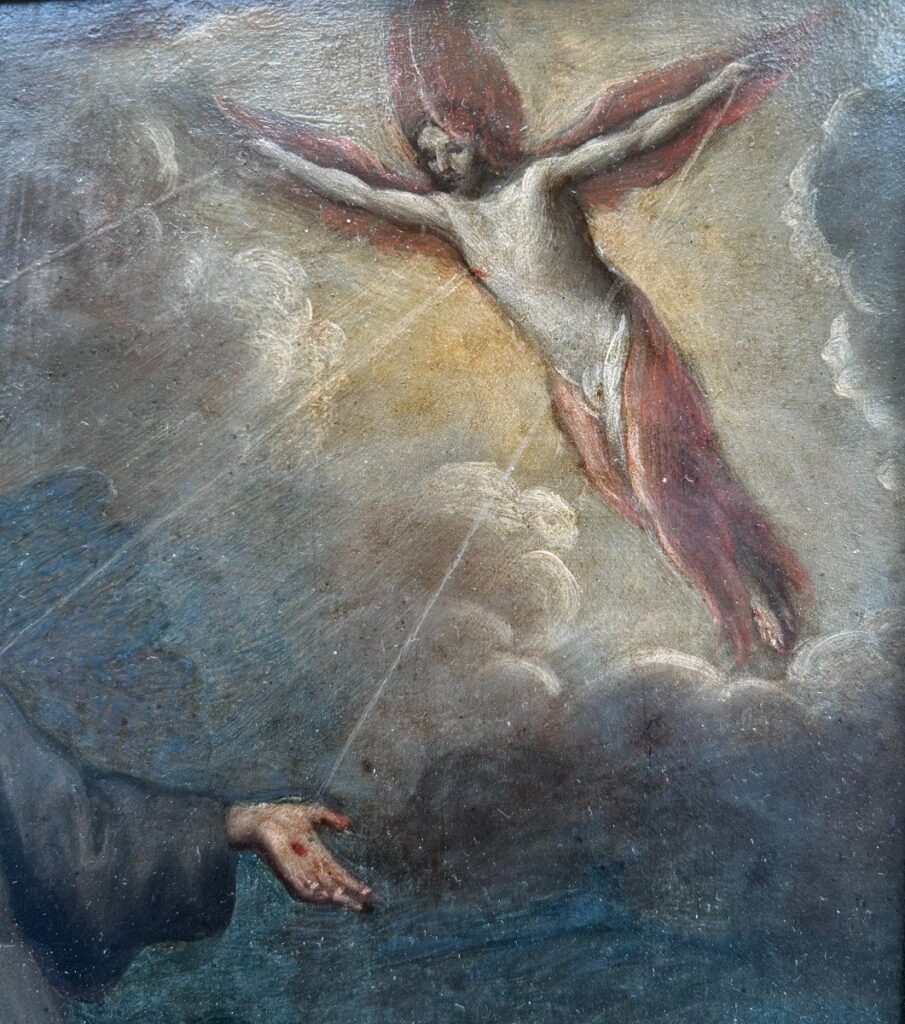 San Francisco de Asís recibiendo los estigmas,trabajo español de la segunda mitad del siglo XVII.