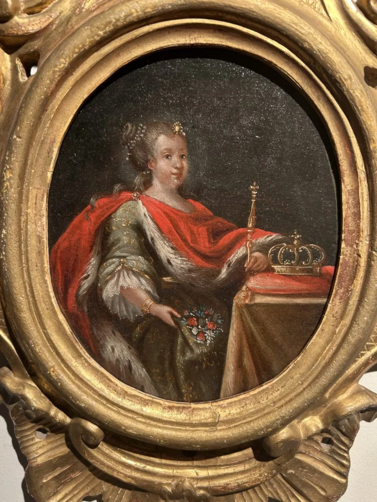 La reina María Luisa de Saboya óleo sobre lienzo con marco de la época de madera tallada y dorada.