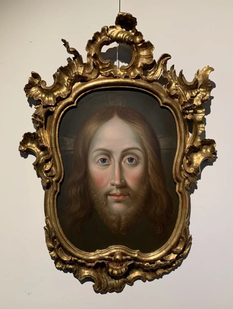 Rostro de Cristo, óleo sobre cobre, 36,5 x 28 cm. Con marco original de la segunda mitad del siglo XVIII de madera tallada y dorada.