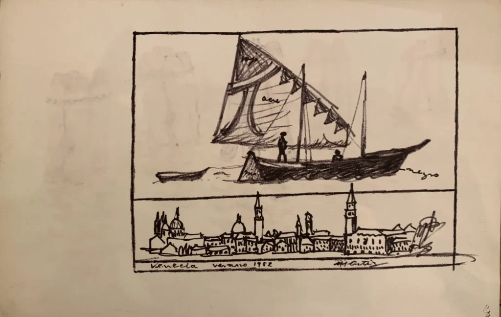 Tinta sobre papel verjurado firmado y fechado con la inscripción: verano 1952. Al dorso con otro dibujo de Venecia.
