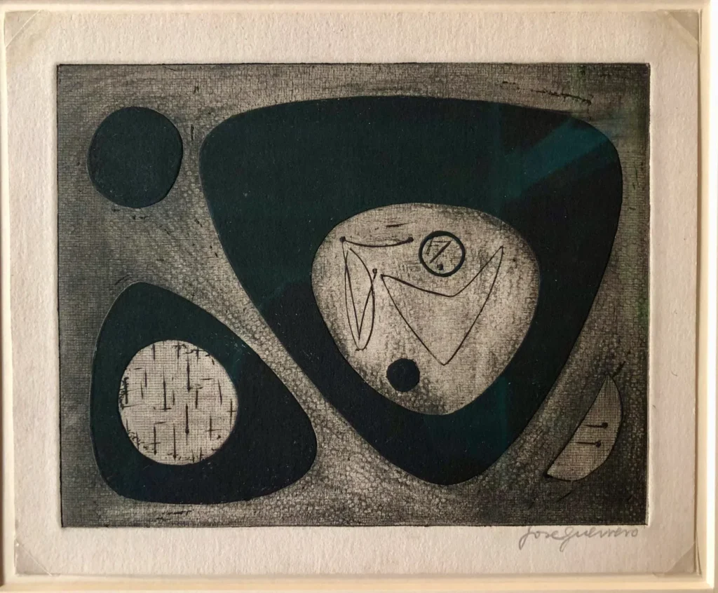 Grabado al aguafuerte de 1950 . Realizado en el Atelier 17 del artista en Nueva York. Los grabados que realizó entonces serían sus primeros trabajos abstractos, antes que su pintura. Se puede considerar un original pues se conocen menos de cinco ejemplares. Expuesto en el Smithsonian Institution de Washington en el año 1952.