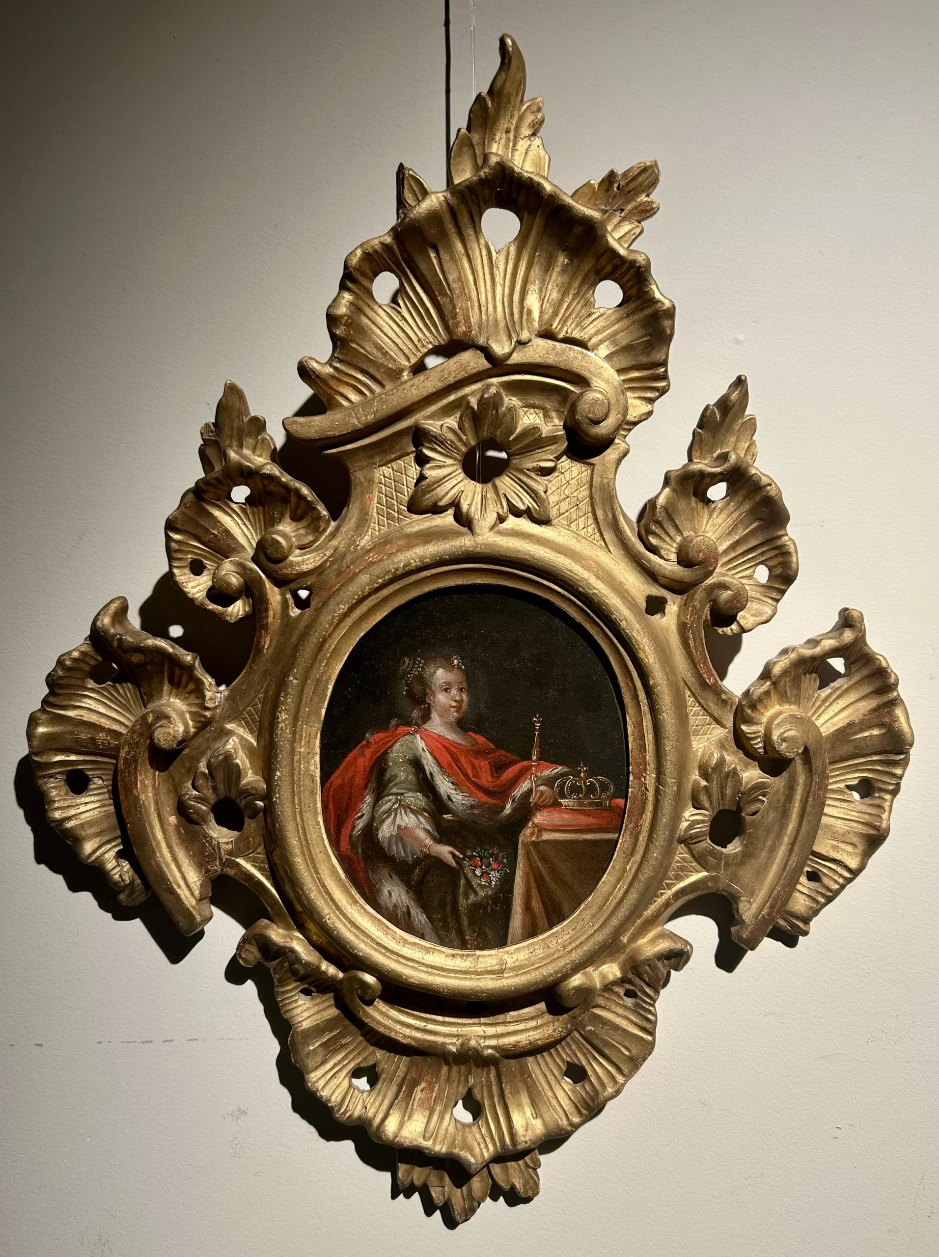 La reina María Luisa de Saboya óleo sobre lienzo con marco de la época de madera tallada y dorada.