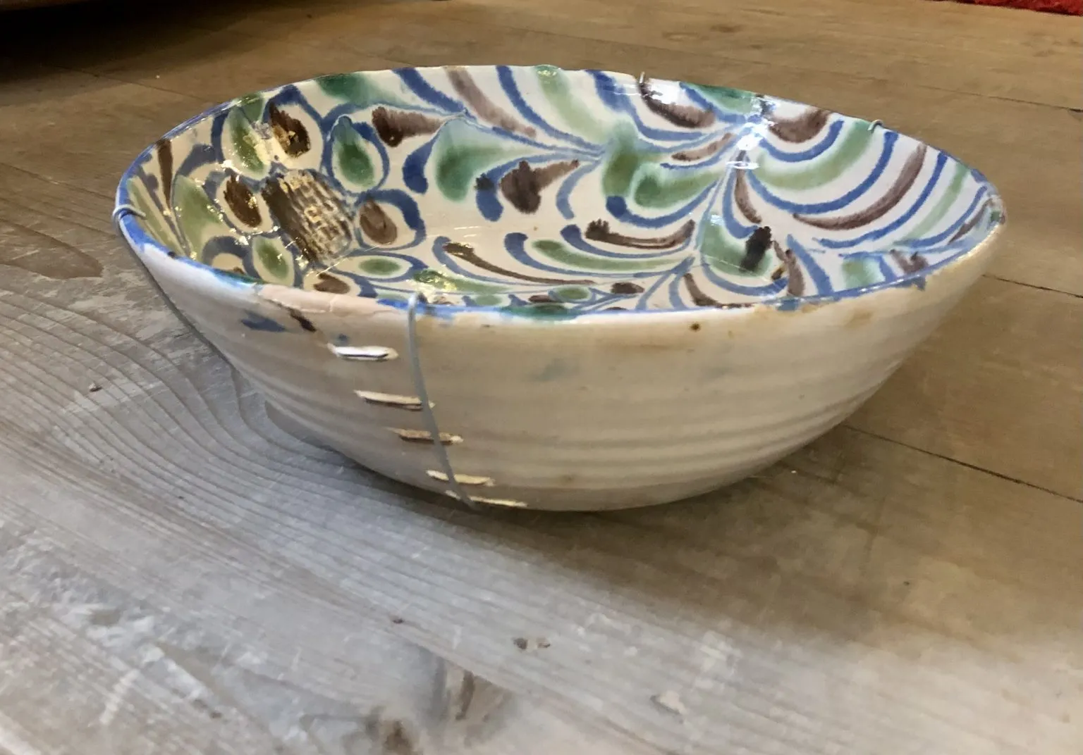 Cerámica vidriada con decoración de tres colores; azul cobalto, marrón manganeso y verde cobre. Granada primer tercio del siglo XX
