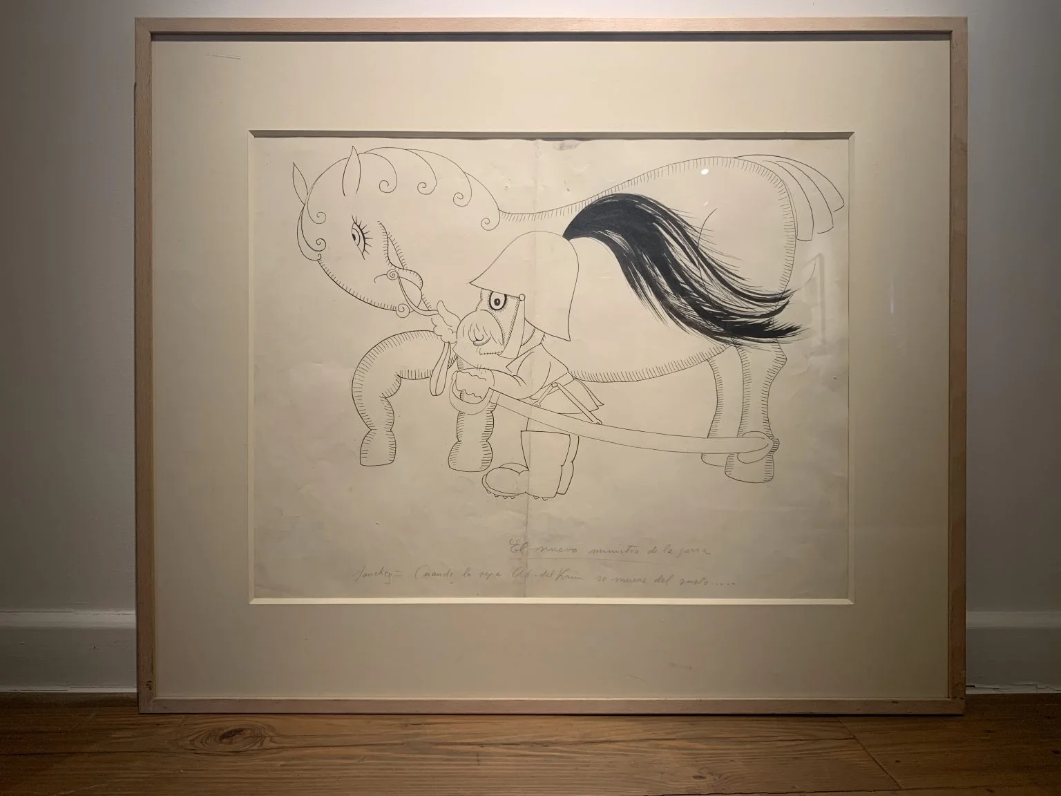 Ésta caricatura se relaciona con el nombramiento de ministro de guerra a José Sánchez Guerra. Destaca el tratamiento pictórico de la cola del casco realizado con largas y gruesas pinceladas, contrastando con el dibujo característico del autor. El caballo, que parece de juguete tiene un claro aire vanguardista.
