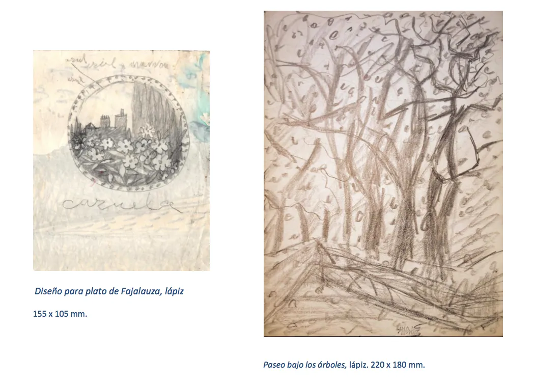 En la exposición hay piezas que han debido de servir para la realización de pinturas pero otras son sencillamente puras manifestaciones de sus sentimientos que precisan del dibujo para reproducir no tanto la realidad sino su visión poética o personal de Granada y de todo lo que para él conllevaba ese entorno. En estos casos podríamos considerarlos experimentaciones con las que el artista busca una expresión más directa y sincera a través del medio gráfico.