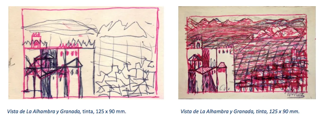 En los grabados, no disminuyen sus posibilidades expresivas sino que ofrecen al artista una oportunidad de lograr una forma de expresión distinta y propia. De la misma manera, con los dibujos, Ortiz logra una manera independiente y nueva de expresar algo distinto. En el caso de sus impresiones granadinas, por una parte tan inspiradoras y por otra tan evocadoras y ricas en recuerdos vitales, serían precisamente los dibujos instrumentos fundamentales para transmitirse.