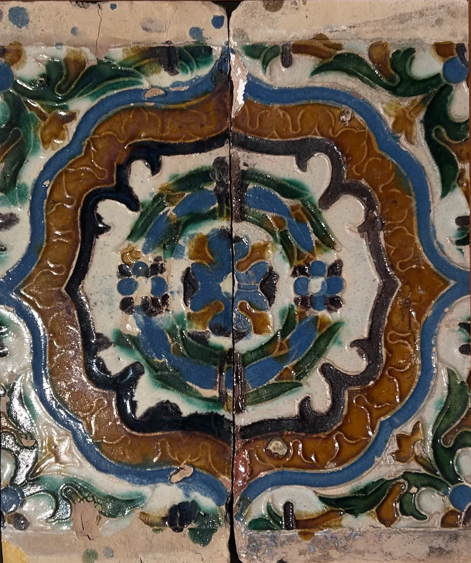Azulejos del tipo denominado por tabla decorado con motivos vegetales de mediados del siglo XVI