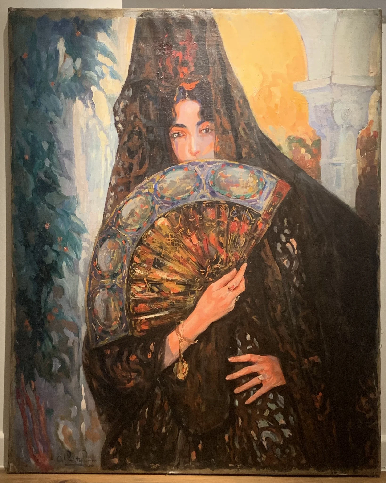 Alejandro Christophersen (Cádiz, 1866 – Buenos Aires, 1946) Una noche en un patio de Sevilla, óleo sobre lienzo, 100 x 80 cm. Artista vinculado al mundo de la arquitectura, particularmente en Argentina donde