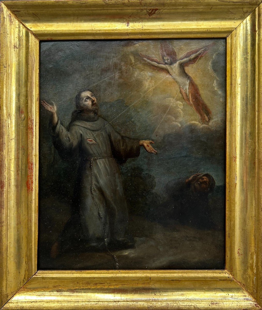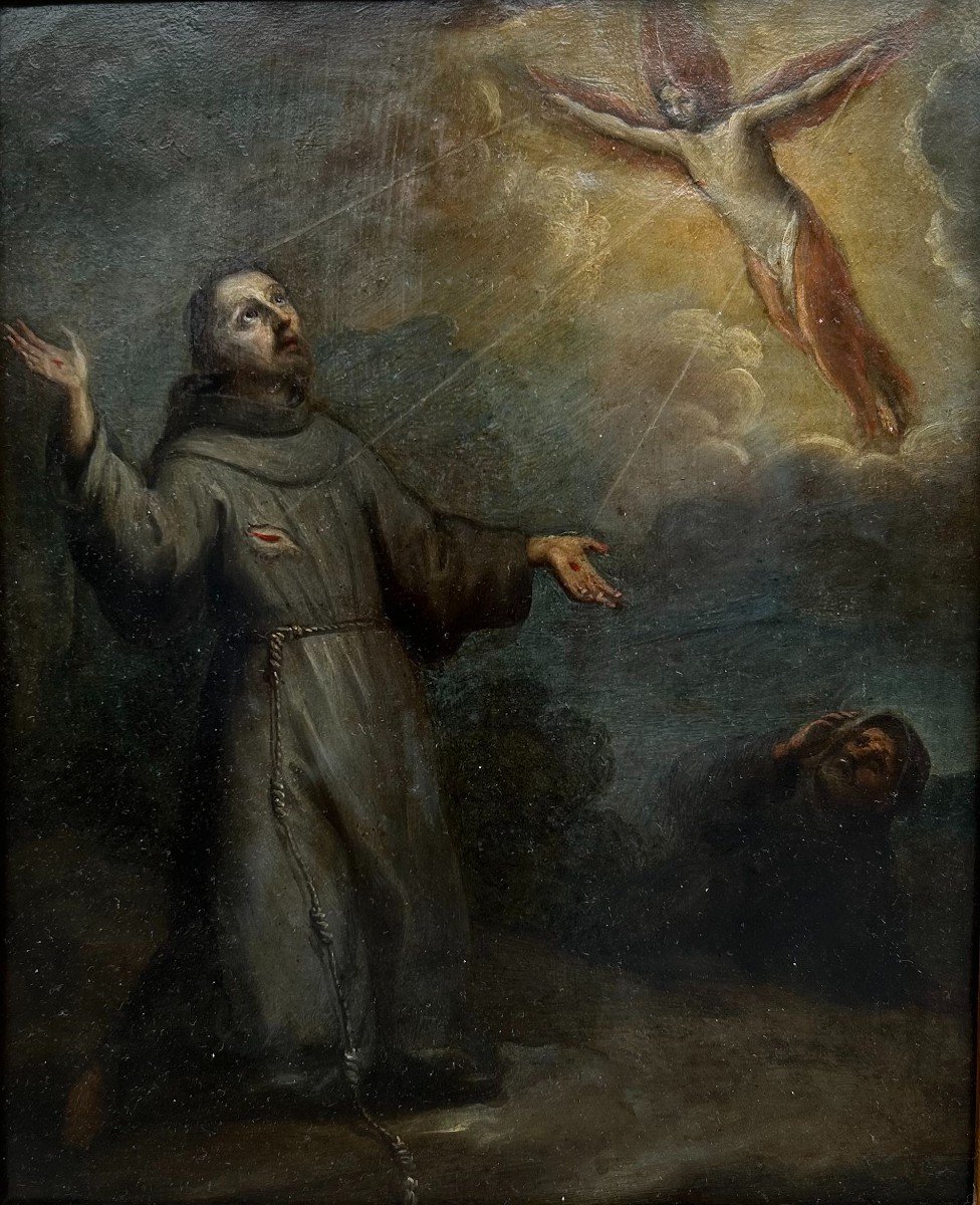 San Francisco de Asís recibiendo los estigmas,trabajo español de la segunda mitad del siglo XVII.