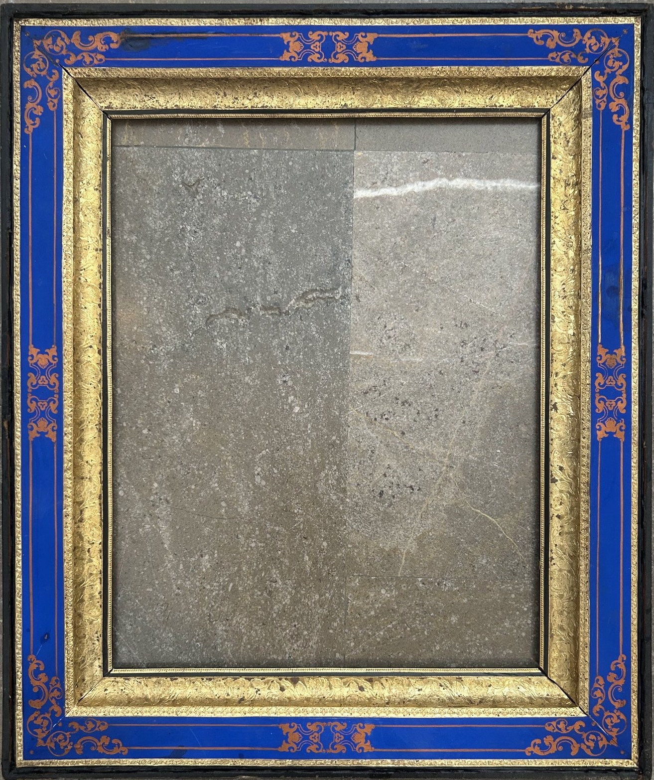 Gran escribanía del siglo XIX, compuesta por siete piezas en bronce dorado con detalles grabados a modo de cordel tanto en las bases como cuerpo y tapas de los contenedores de tinta y secantes.